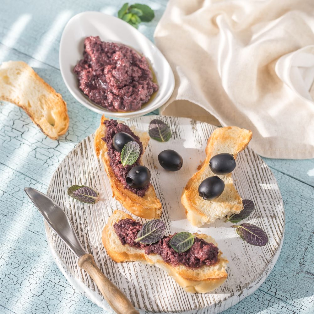 🍝 Bruschetta z pieczonym bakłażanem i serem Pecorino Romano, podana z serem Burrata i kremem z pieczonego czosnku